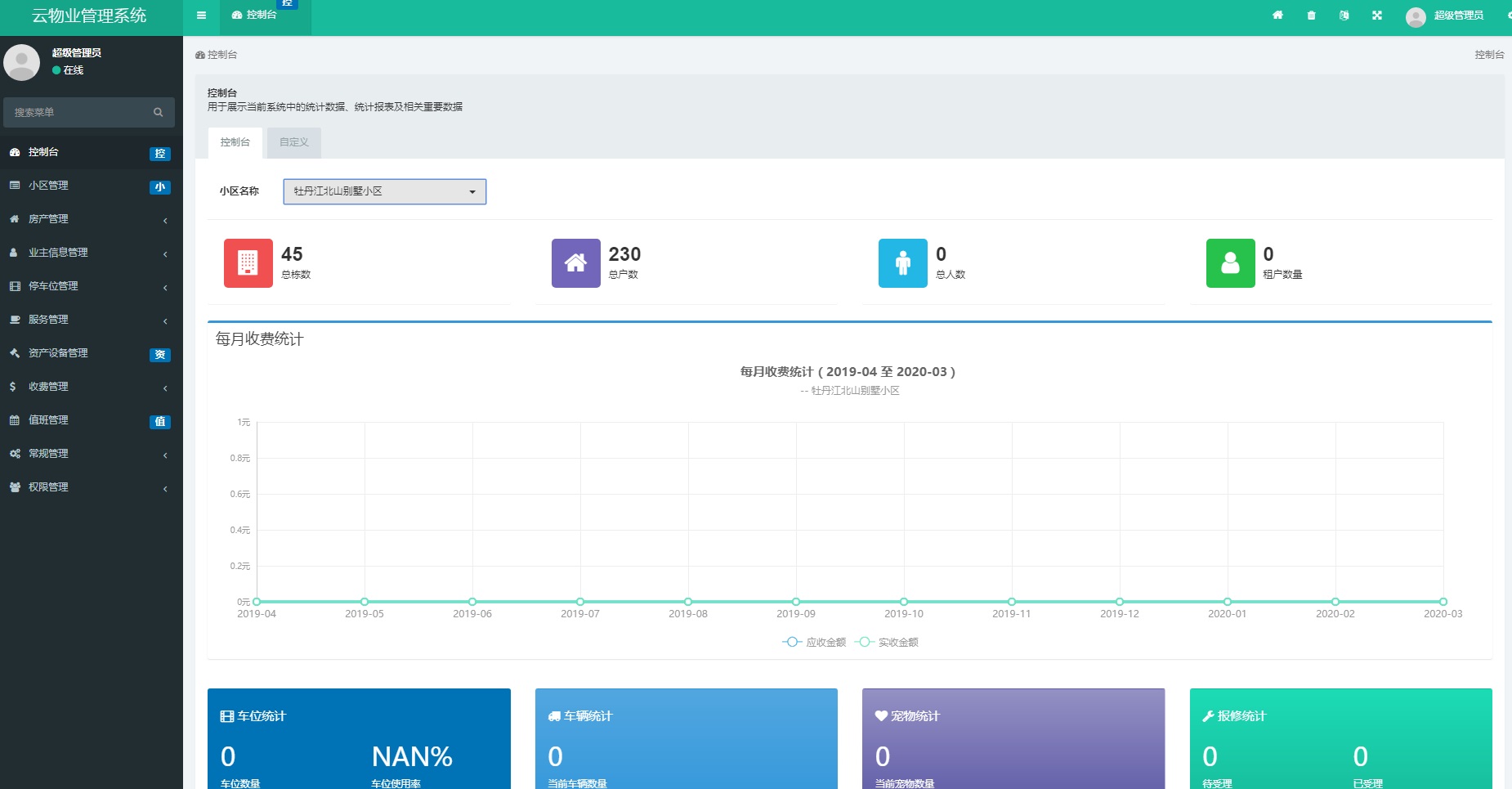 小區(qū)每月收費(fèi)金額統(tǒng)計(jì)